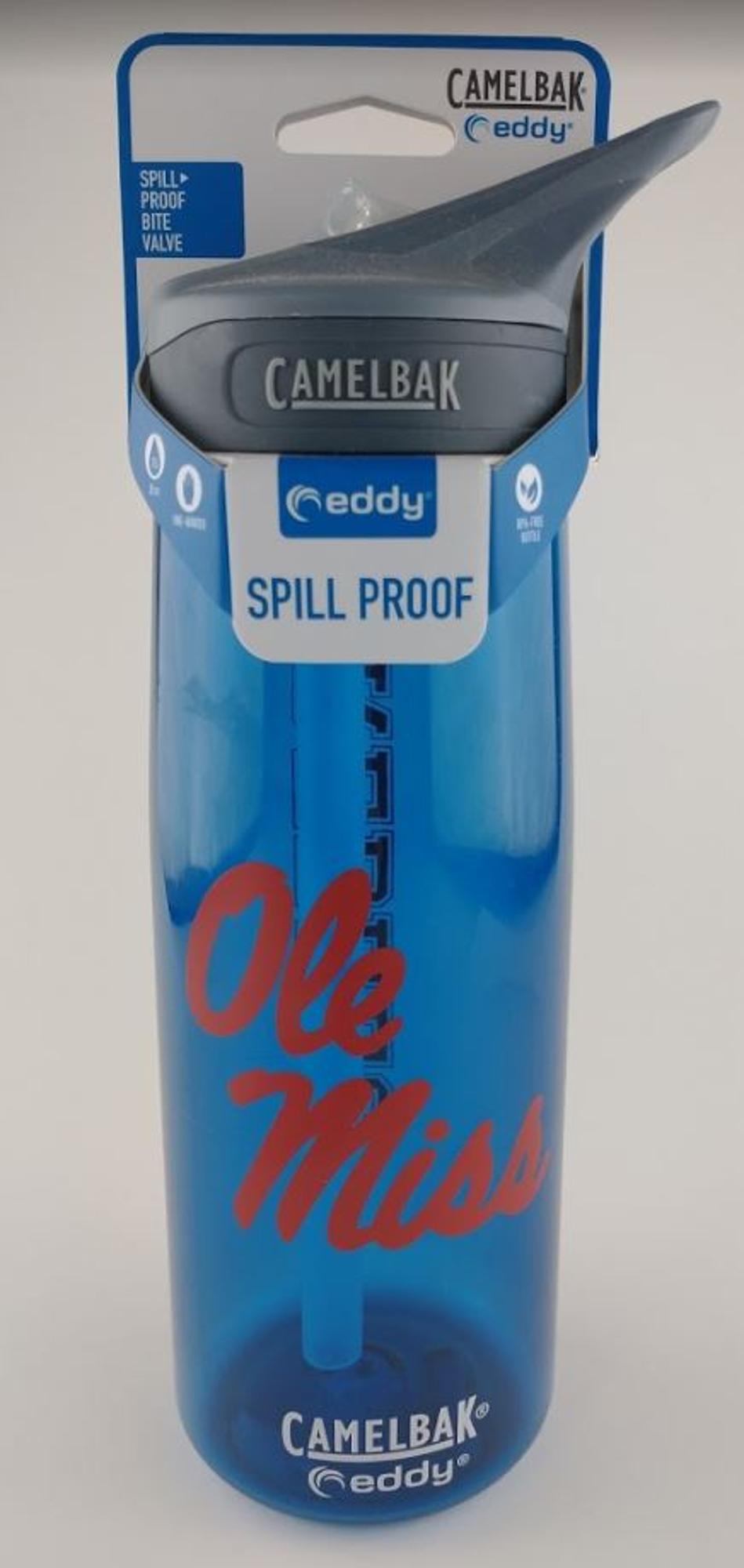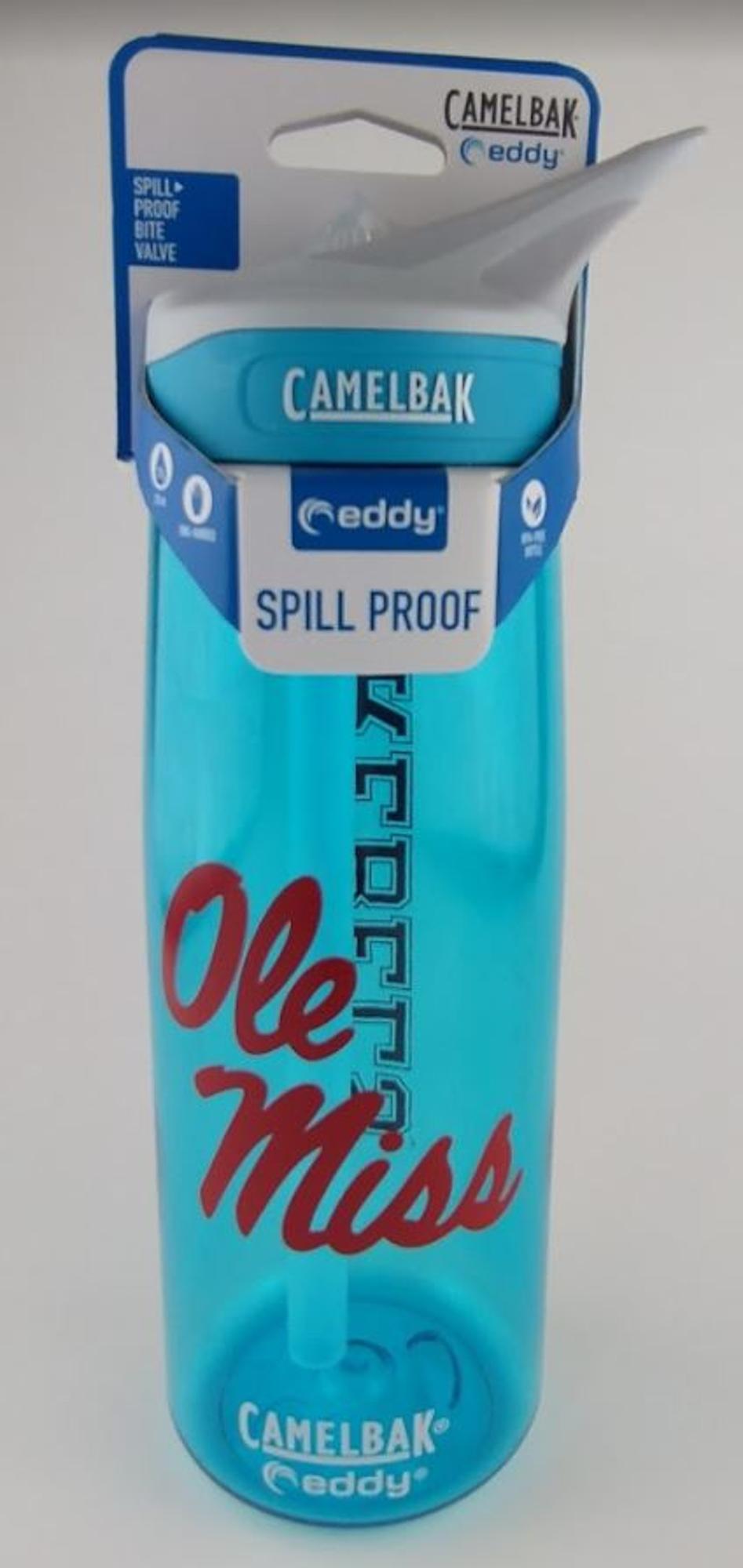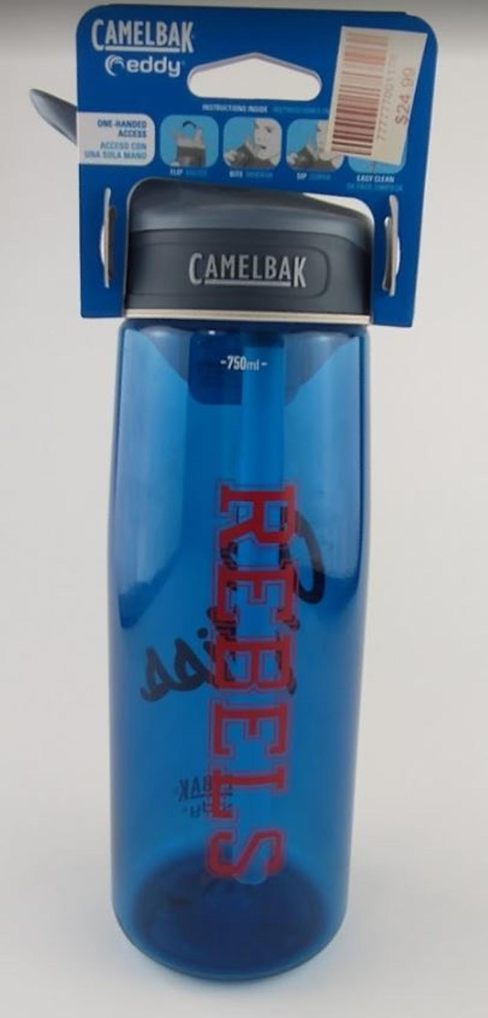 "Ole Miss" on one side and "Rebels" on the other. Stay hydrated and show your Ole Miss spirit with this classic Camelbak water bottle. Available in a light blue (rain) or navy