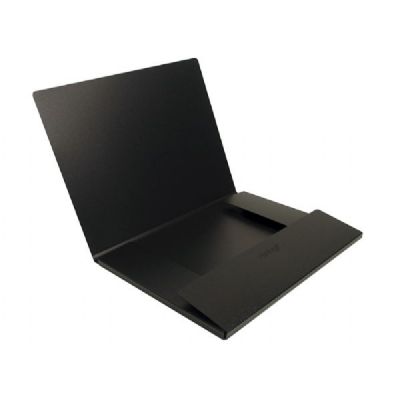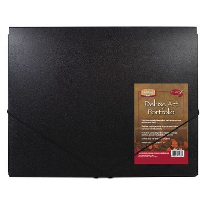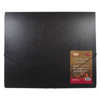 Folio constructed of heavy-duty black polypropylene with textured finish. Resilient elastic retaining straps to securely close and house valued contents. Perfect for protecting and transporting drawings, sketches, documents and other dry media. 7/16" gusset. Stated sizes indicate the content sizes, not the outside dimensions.
