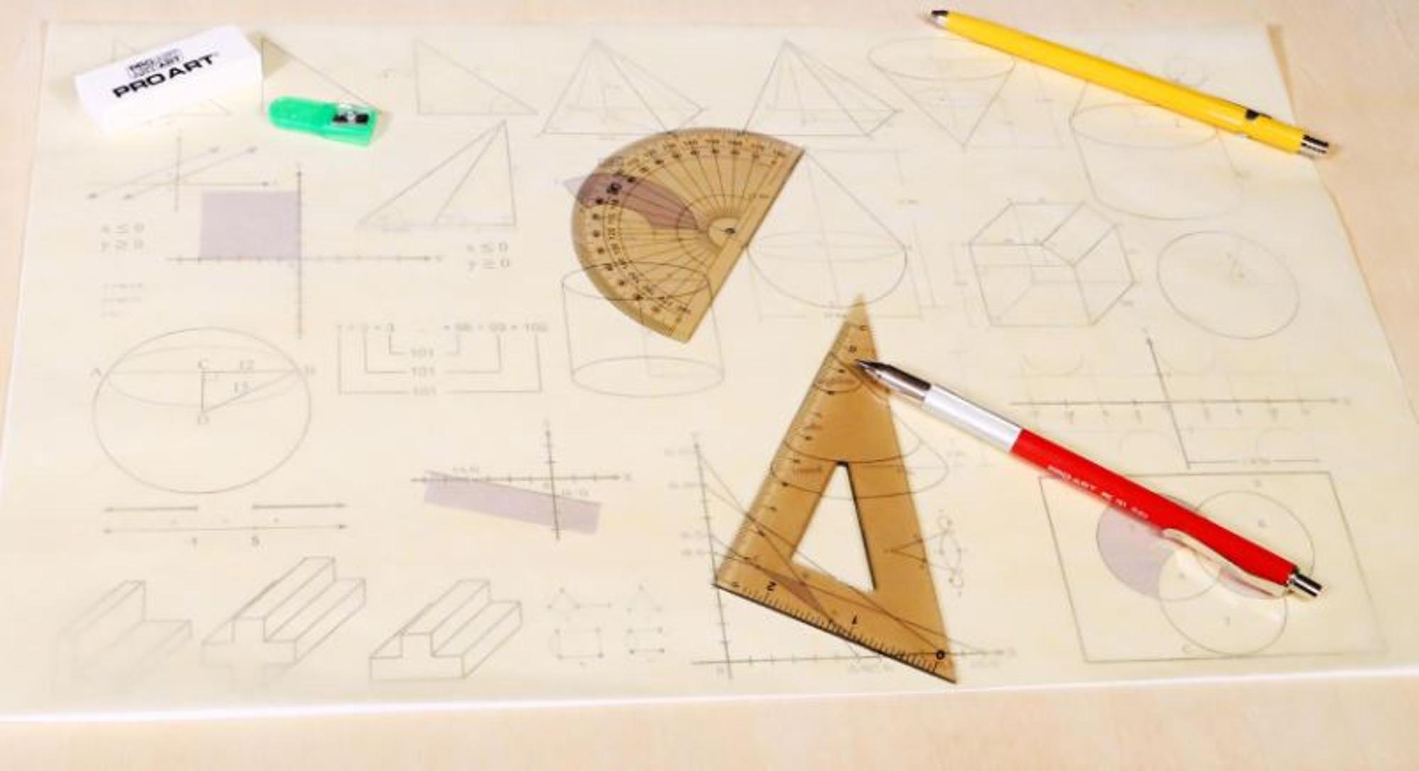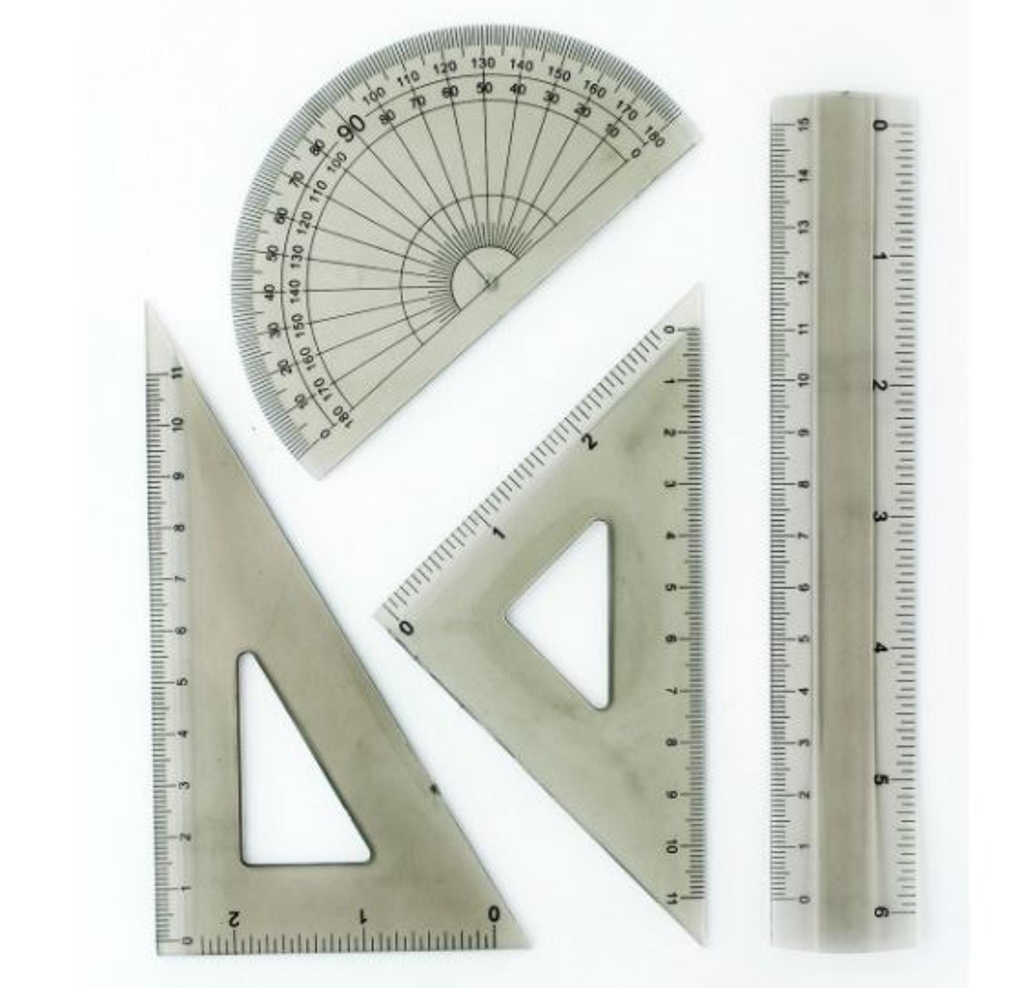 Pro Art Drawing Set Small Smoke 4pc - Durable, scholastic drawing instruments made of smoky topaz tinted plastic with beveled edges for contrast and easy visibility. Resistant to breakage and will not discolor. Set contains: 6" ruler, 45/90 and 30/60 triangles, and a 180 degree protractor. Triangles and ruler feature gradations in inches and millimeters.