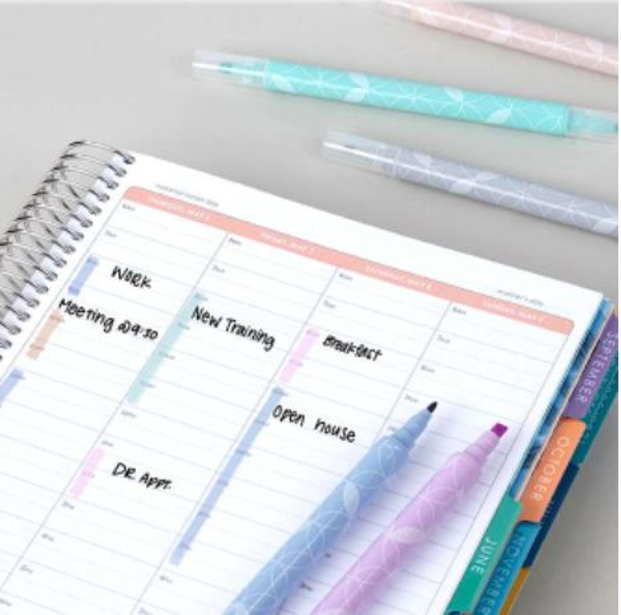 • Pen length: 6.69” • Chisel tip and medium tip • Set of 5 • Blush, Orchid, Pool, Monaco, Grey • Imported