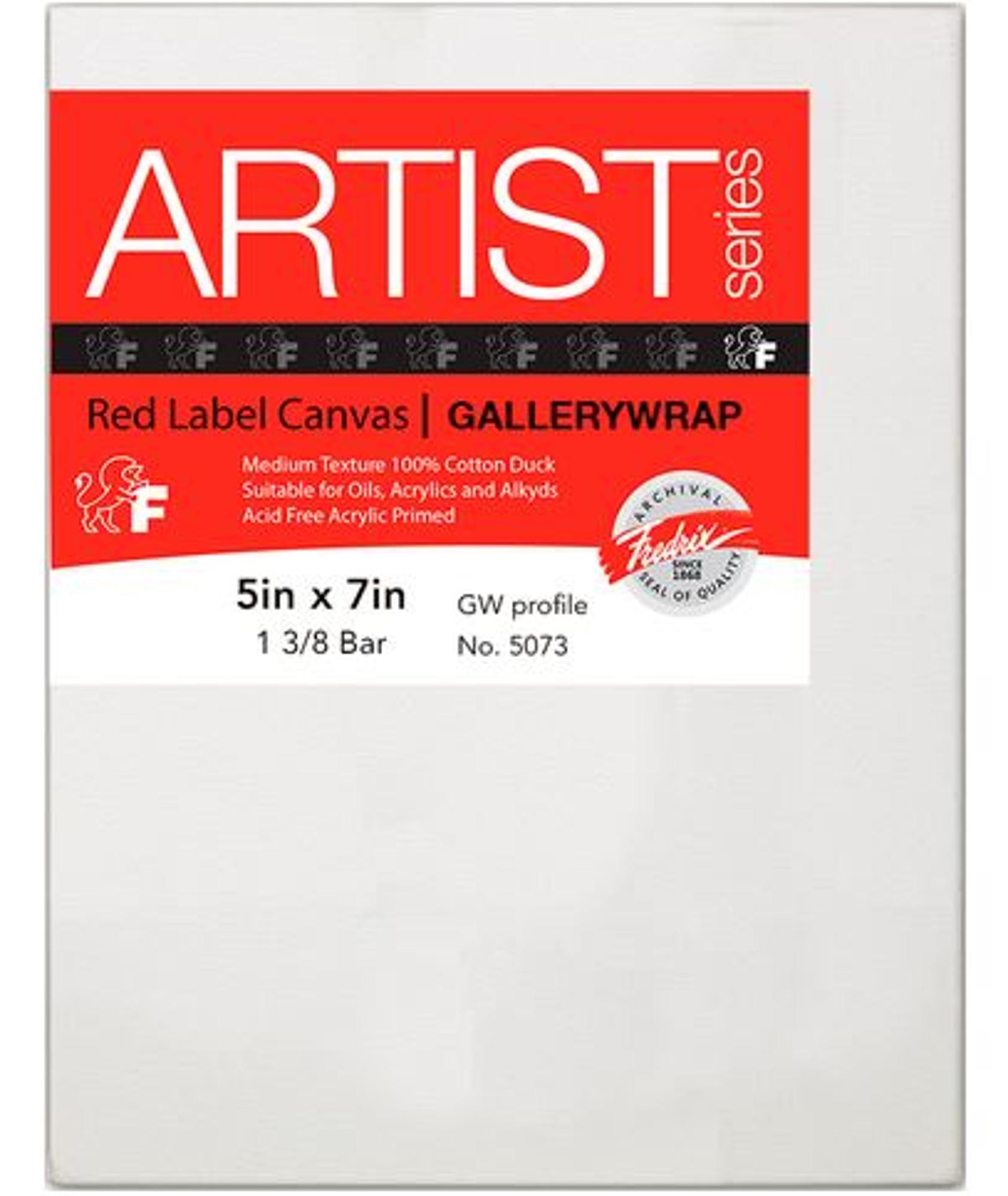 Fredrix Gallerywrap Canvas is a medium-textured, superior quality duck canvas. The acid free double acrylic primed surface is suitable for paintings in oils, acrylics, or alkyds. The canvas is mounted on 1-3/8" heavy-duty stretcher frames for double the standard thickness. The canvas is stapled on the back to allow painting on all sides. It can hang with or without a frame.