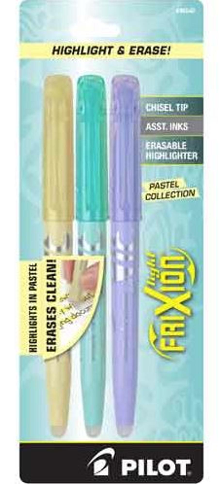 Highlight and erase repeatedly without damaging books or documents. No wear or tear! Thermo-sensitive ink formula disappears with erasing friction. The Classic Colors sets include yellow, orange, and pink. The Pastel Combos set may include blue, purple, green, yellow, and/or pink.