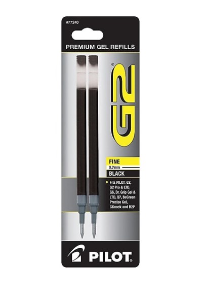 Fits the following Pilot pens: G2, G2 Pro, G2 Fashion, PenStylus & LTD, G6, Dr. Grip Gel & LTD, G-knock, B2P Gel & MR Gel.