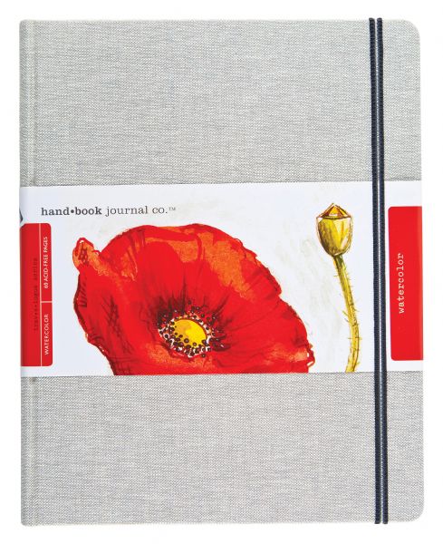 Bound in a beautiful linen book cloth cover, these hard-bound journals offer watercolorists a practical option for travel painting. Each book includes 30 sheets (60 pages) of a soft white, 200 gsm acid-free paper with a cold press finish that is the same on each side of the sheet. They have a durable elastic closure and a clear envelope on the inside back cover.