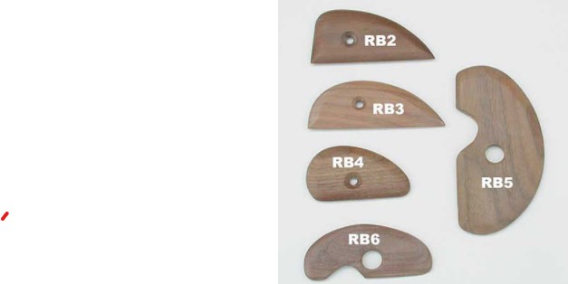 These ribs are made from smooth finished hardwood, and employ the basic shapes required for opening, shaping, curving, smoothing and trimming wet clay on the potter's wheel. The RB2 is included in Kemper's Pottery Tool Kit. The RB4 is a bowl rib.