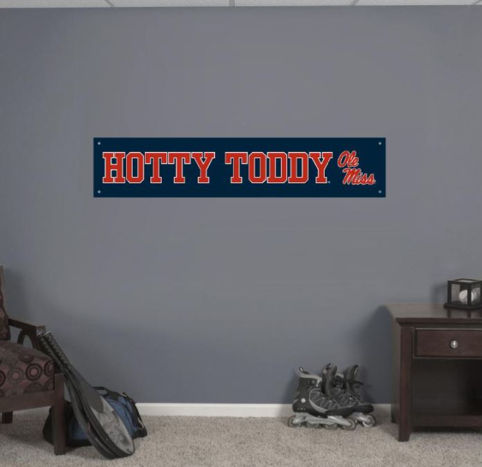 Great for dorm, man cave or Grove tent decor! This Hotty Toddy banner is UV printed on high-performance vinyl. Indoor and outdoor durable. Grommets at each corner for easy hanging. Measures 10 inches x 4 feet.