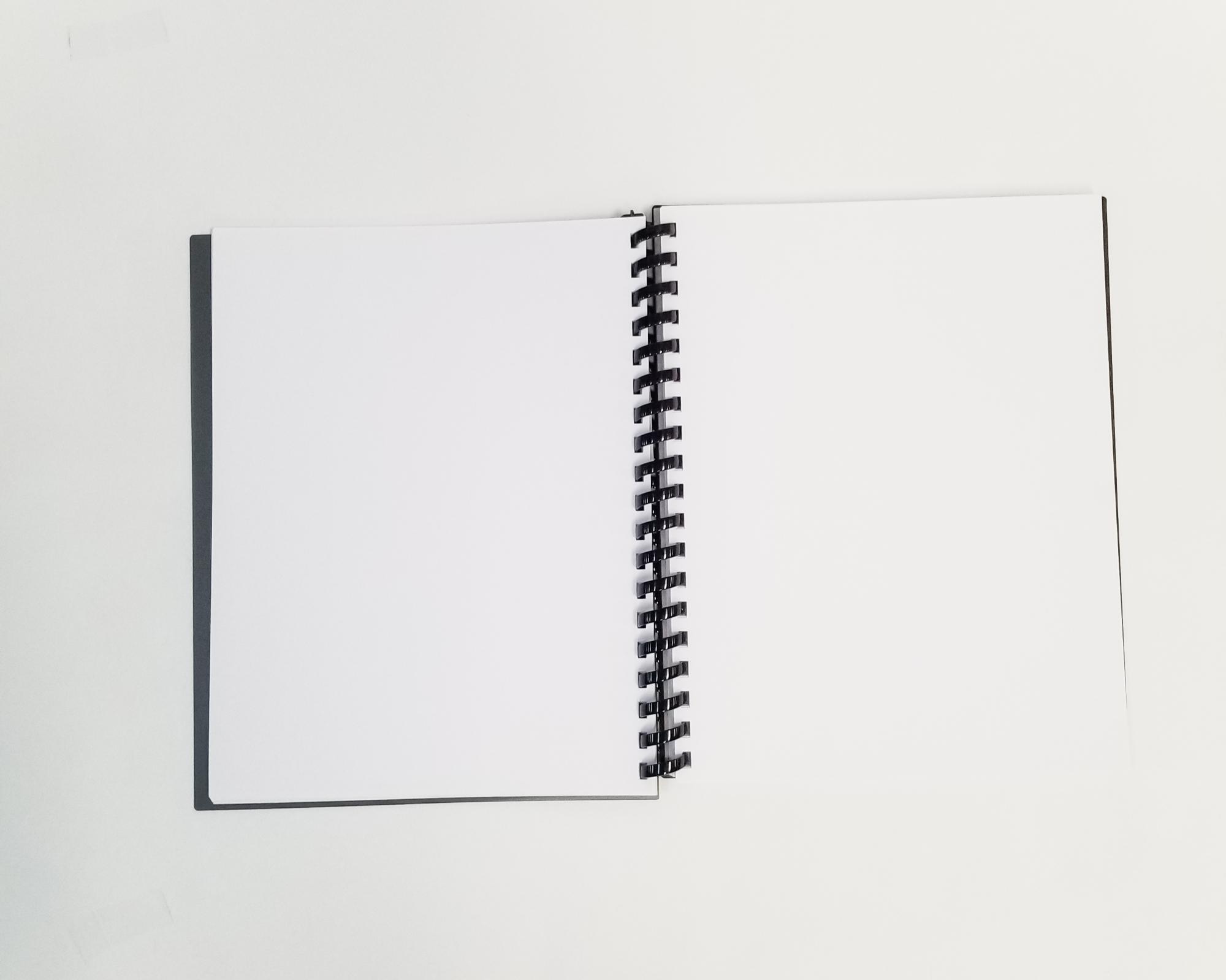Assorted transparent and opaque covers. 64 sheets, medium texture, acid free. Spiral binder can be removed and replaced so that pages can be added, removed, or rearranged.