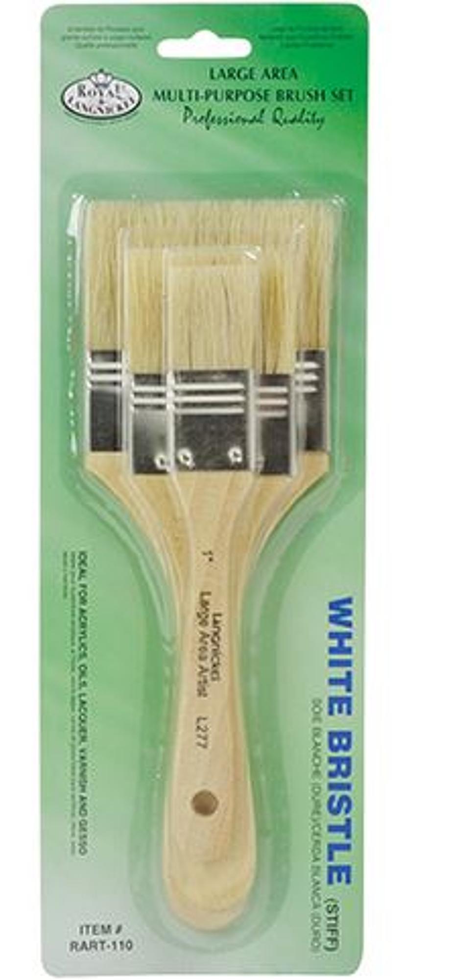 Professional quality stiff white bristle brushes in 1", 2" & 3" sizes. Ideal for acrylics, oils, lacquers, varnishes or gesso.