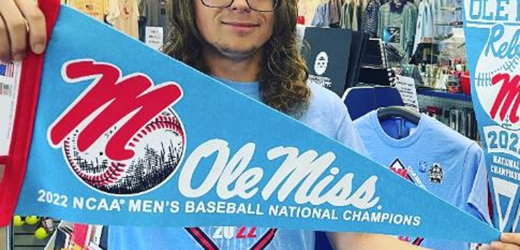 This 30x12 wool felt "FlockPlus" pennant features Ole Miss Baseball and its 2022 NCAA National Championship. The light blue felt is striking and the graphics stand out from the background. A high-quality win deserves a high-quality pennant!