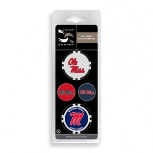 Two oversized 40mm clay ball markers and two 25mm iron-stamped ball markers. Show your love for the Ole Miss Rebels when you're out on the course with these distinctive ball markers.