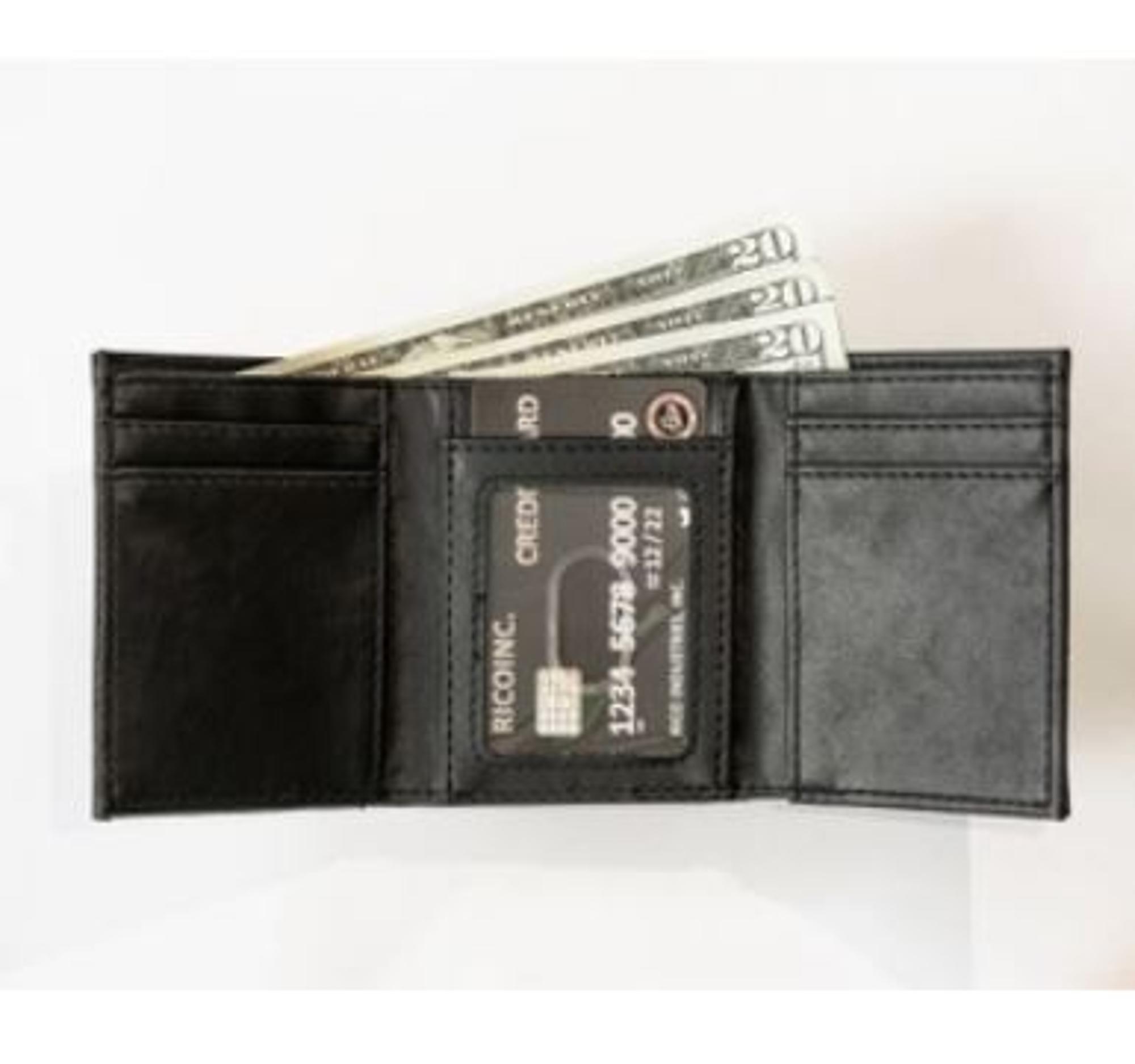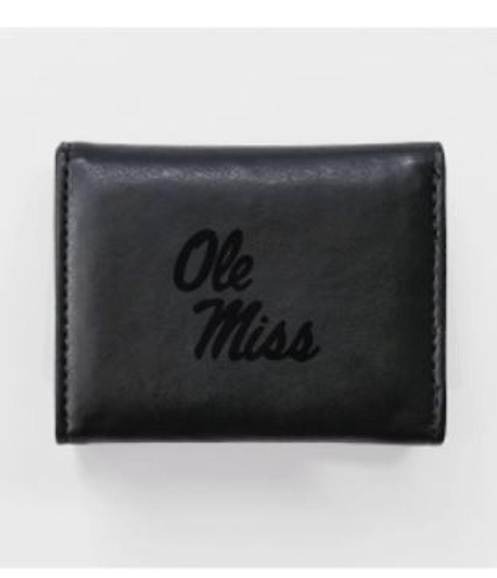 Show your Ole Miss pride every day when you carry this laser-engraved faux leather trifold wallet. Measures 3.25" x 4". Features seven interior pockets including one with a transparent window for an ID. There's an additional large full-length bill section. Makes a great gift for the loyal Rebels sports fan!