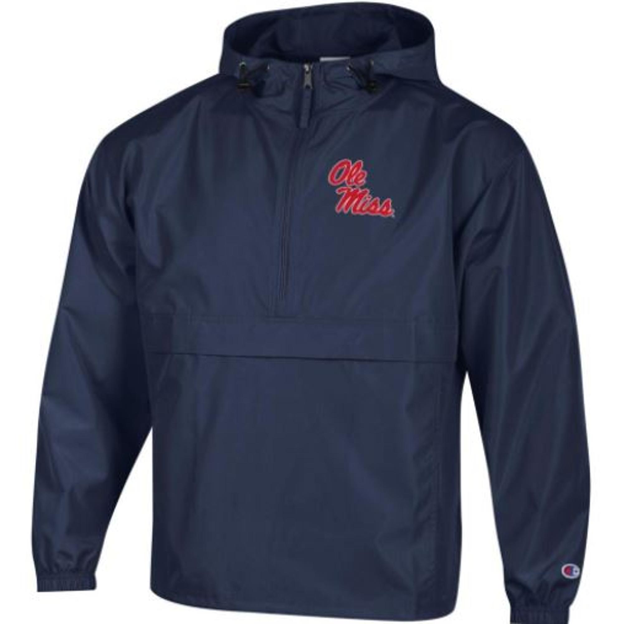 100% polyester micro poplin fabric with water-resistant coating. Open bottom with shock cords. Scuba collar with hood. Can be packed into the front pocket. Elasticated cuffs to block the wind. Embroidered stacked script. A lightweight layer for a windy or drizzly Ole Miss game day or a walk to class.
