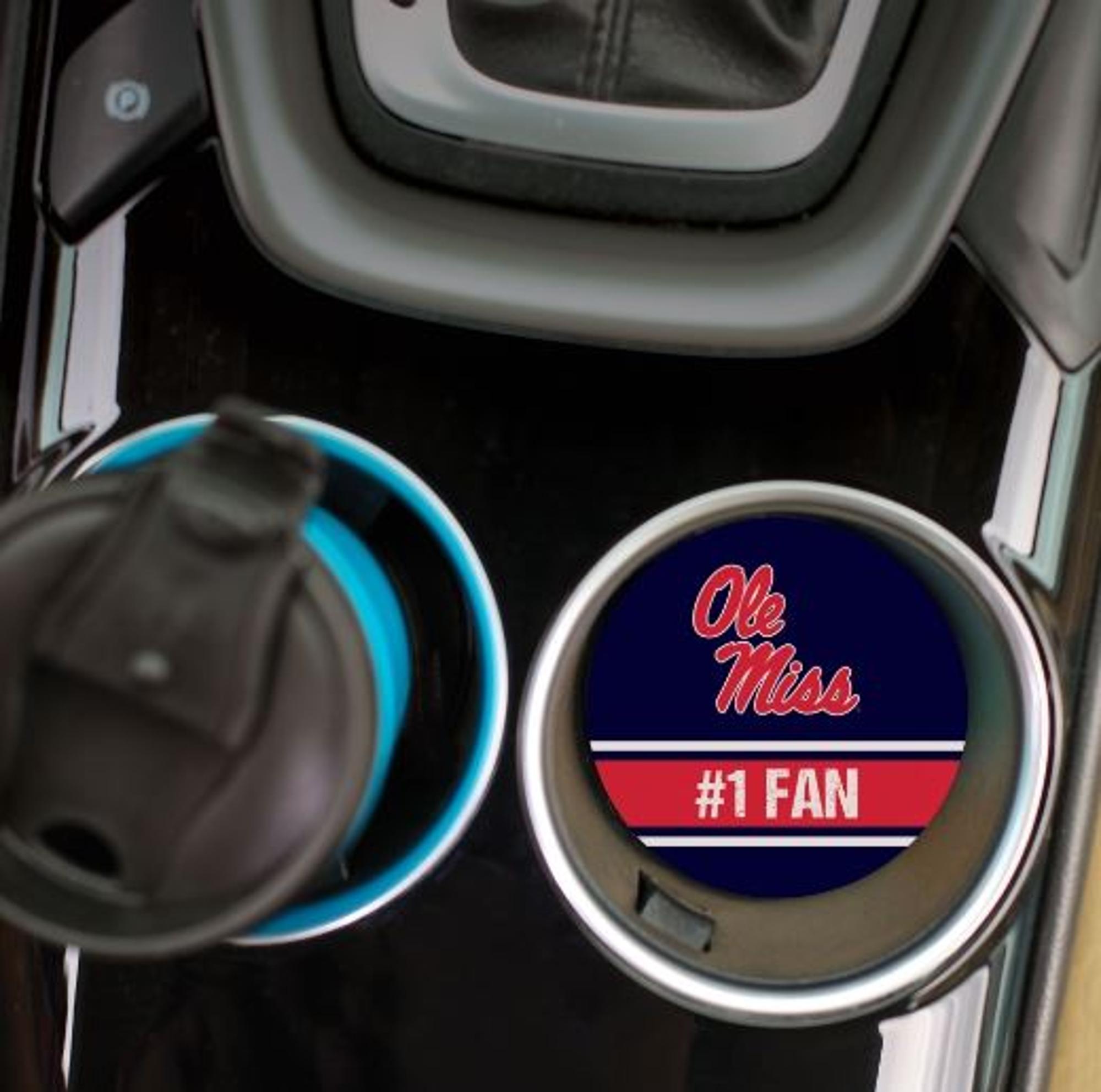 2.75'' W x 2.75'' H. Utilize this car coaster to support your Ole Miss Rebels all season long. Functional and filled with school spirit, this car coaster keeps your vehicle console dry. Each piece includes a convenient slanted edge, allowing for easy removal for cleaning.