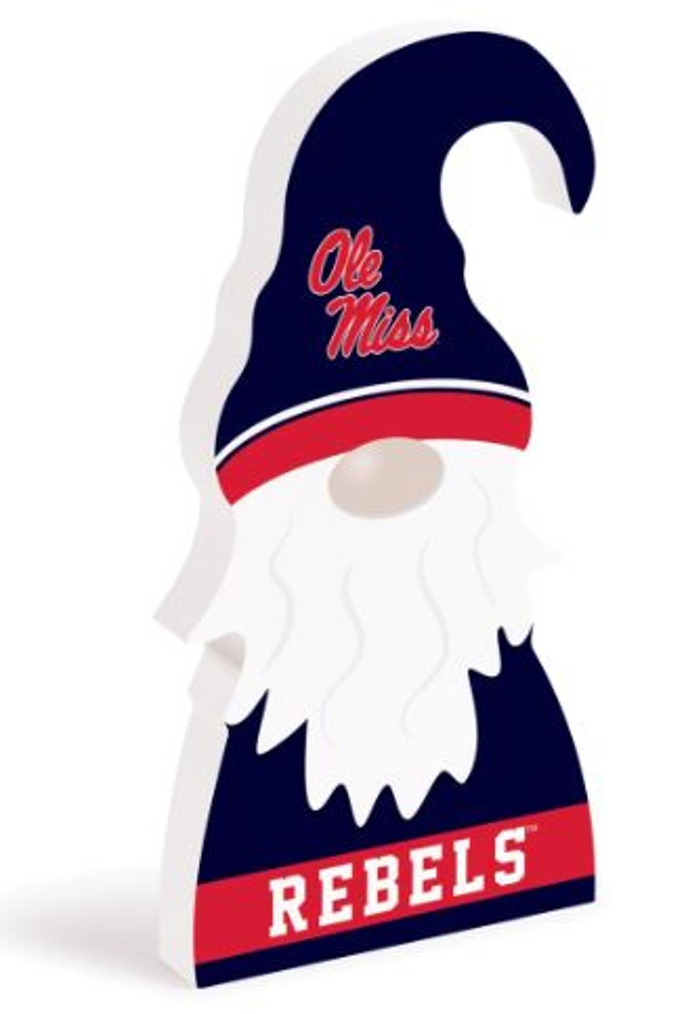 4" W x 8" H x 0.75" D. Carved into the shape of a gnome, this fun piece is conveniently sized to show off your Ole Miss Rebels spirit just about anywhere. Easily display on a desk, bookshelf, or dresser.