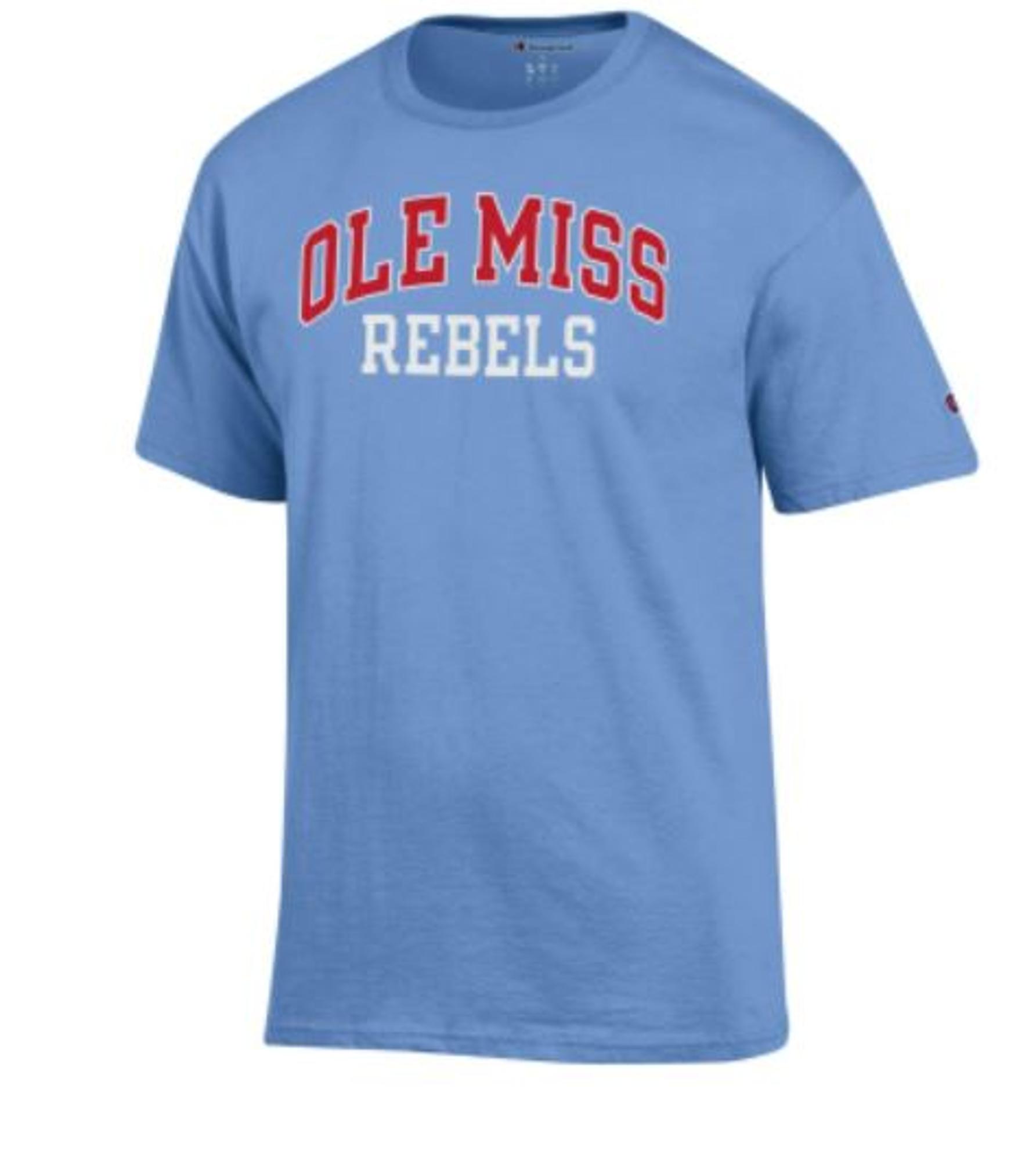 100% cotton. Classic Ole Miss arch design with Rebels below. This simple design gets the message across that you cheer for the Ole Miss Rebels!