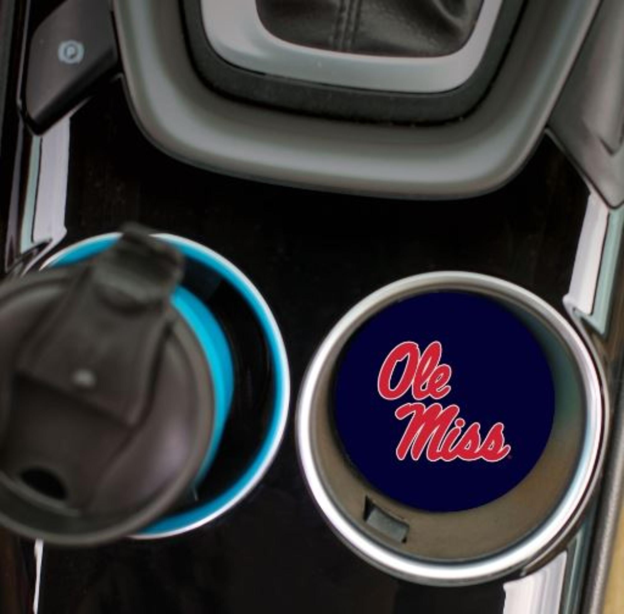 2.75'' W x 2.75'' H. Utilize this car coaster to support your Ole Miss Rebels all season long. Functional and filled with school spirit, this car coaster keeps your vehicle console dry. Each piece includes a convenient slanted edge, allowing for easy removal for cleaning.
