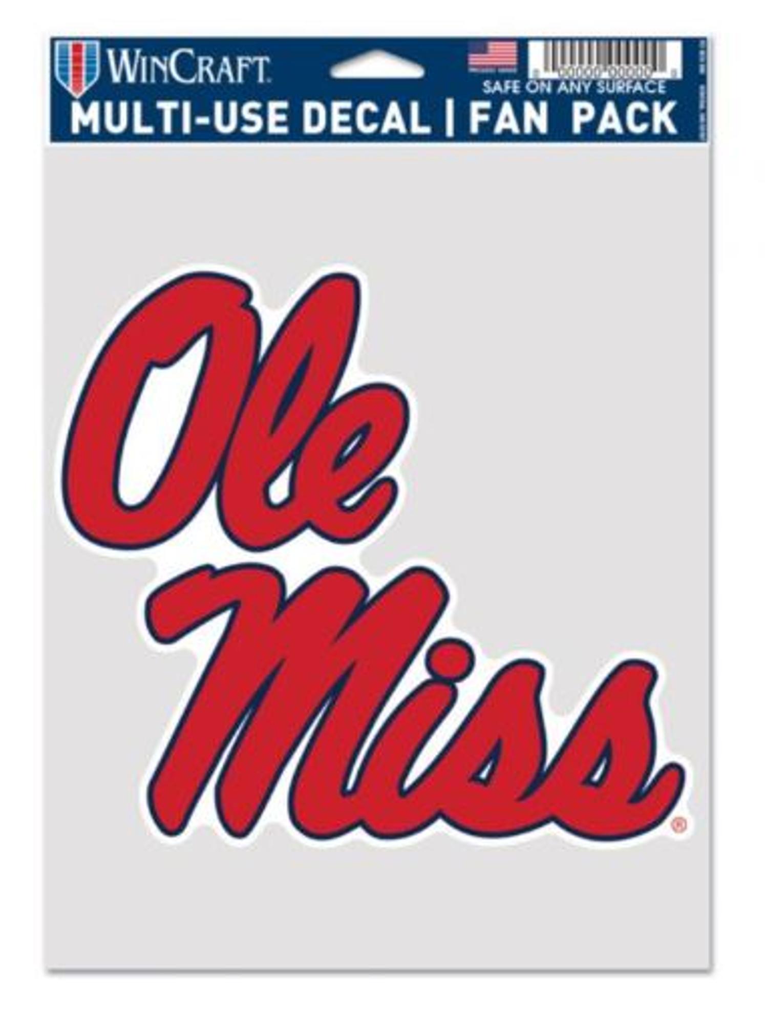 Multi-use decals stick to multiple surfaces and are removable and reusable. Can be used indoors or outdoors and will not leave a residue when removed. Perfect for a work laptop or other surface where permanent application is not desired. This Ole Miss stacked script decal measures 5.25" wide x 4.75 long. Perfect way to show your love for Ole Miss on your laptop or other surface where permanent application is not desired.