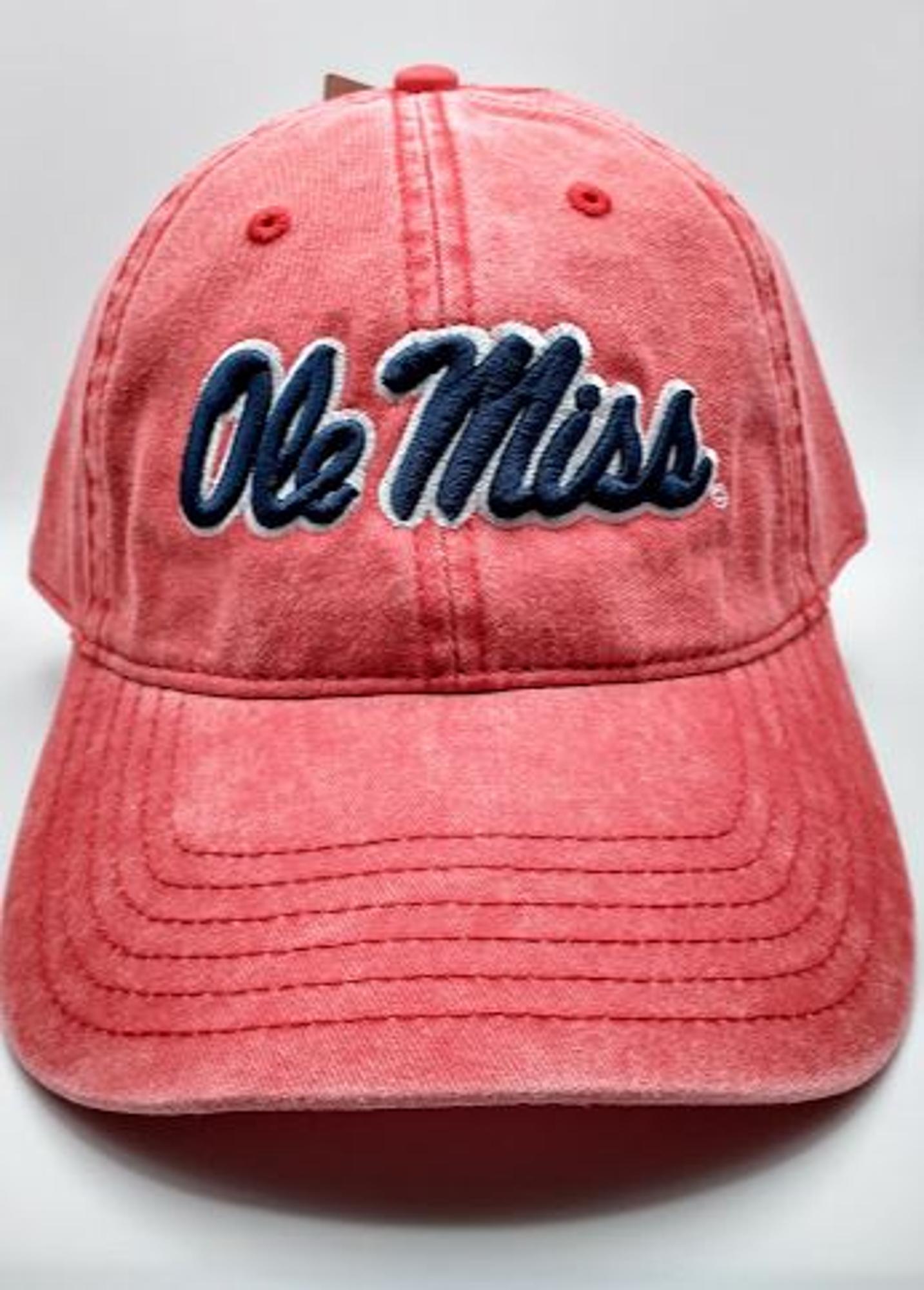 Ole Miss Script Pigment Dyed Twill Adjustable Hat Red