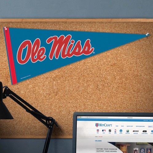 This Ole Miss script soft felt premium quality pennant measures 12" x 30". It is durable enough to "Roll it and Go" when you're packing it up to take home or to the dorm.