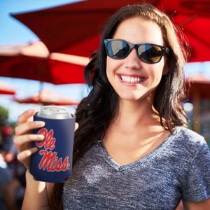 Full color imprinted 12 oz. can cooler made with 1/8" neoprene. Made in the USA. Your love for Ole Miss will be apparent when you use this great can cooler that features Ole Miss script and the shape of the State of Mississippi. Reverses from navy to red--photo shows both sides of a single cooler.
