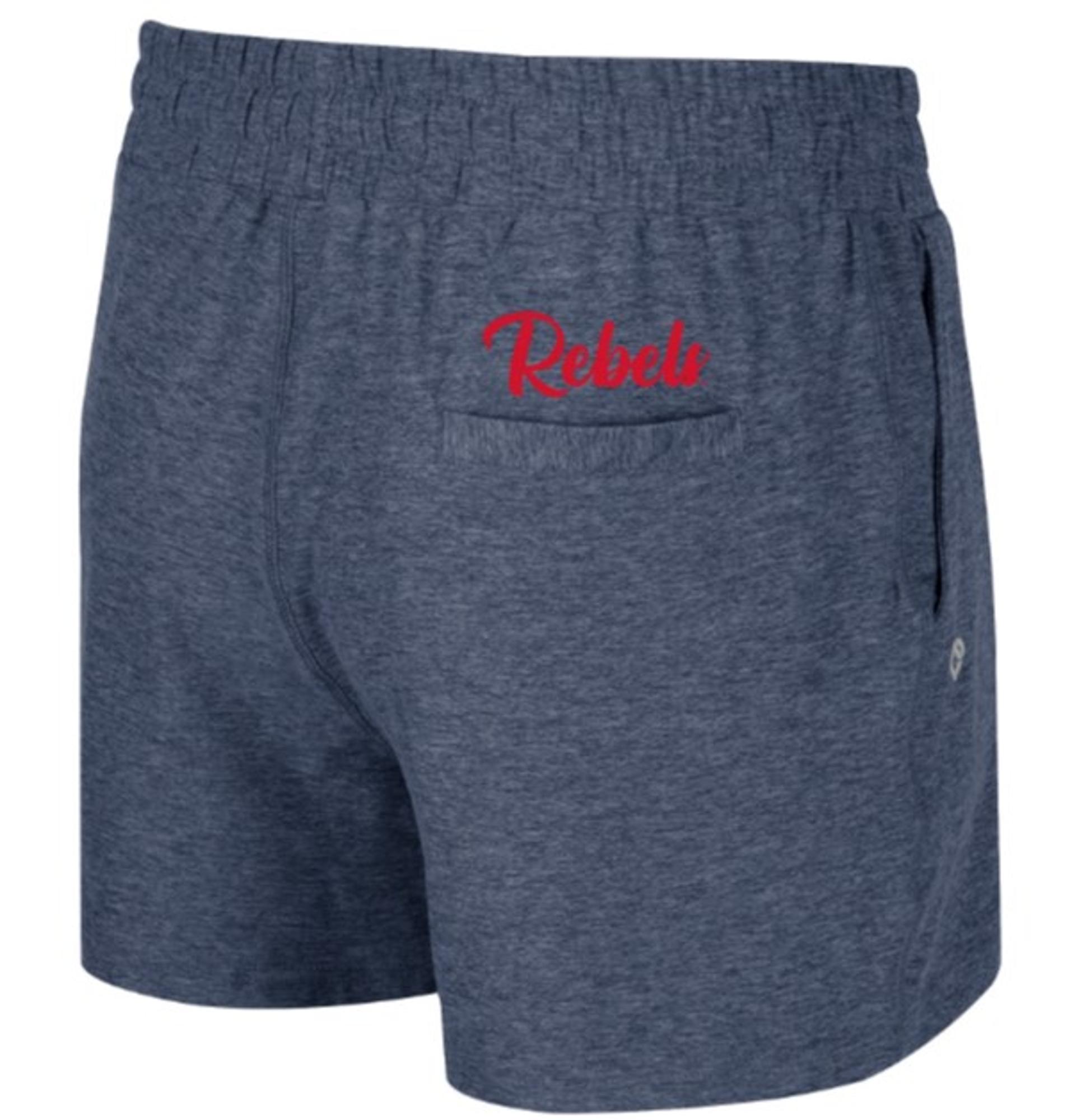 88% polyester, 12% Spandex Cloud Jersey. Elastic waistband with flat cotton drawcords. Side pockets and back pocket with Rebels script above. Ole Miss script at hem of left leg in rubberized print. Great for lounging or heading to class. Wear these shorts to show your love for the Ole Miss Rebels.