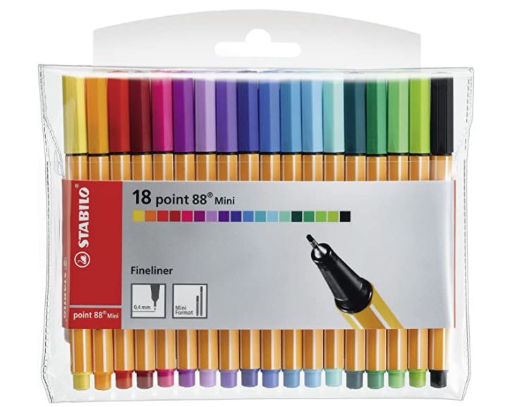 Short and Sweet - the cute younger sibling of the popular point 88 pen! This miniature version of STABILO's well-known fineliner, features the same smudge-proof, brilliant ink and long-lasting .4mm metal-enclosed tip in a more compact pen. point 88 Minis are available in a variety of sets with different combinations of up to 18 vibrant colors. Their smaller size makes them even more convenient to carry around for writing, drawing and sketching on the go.