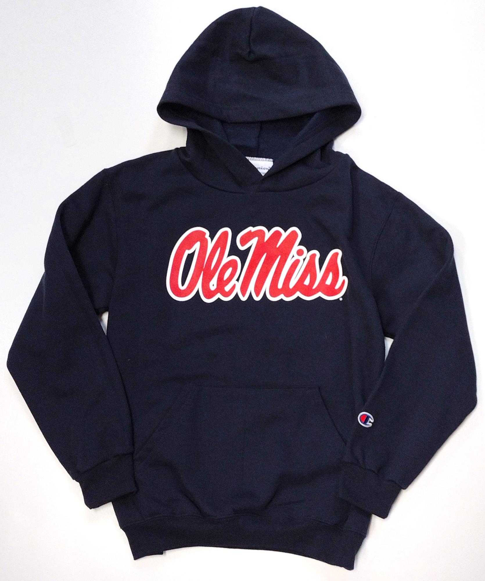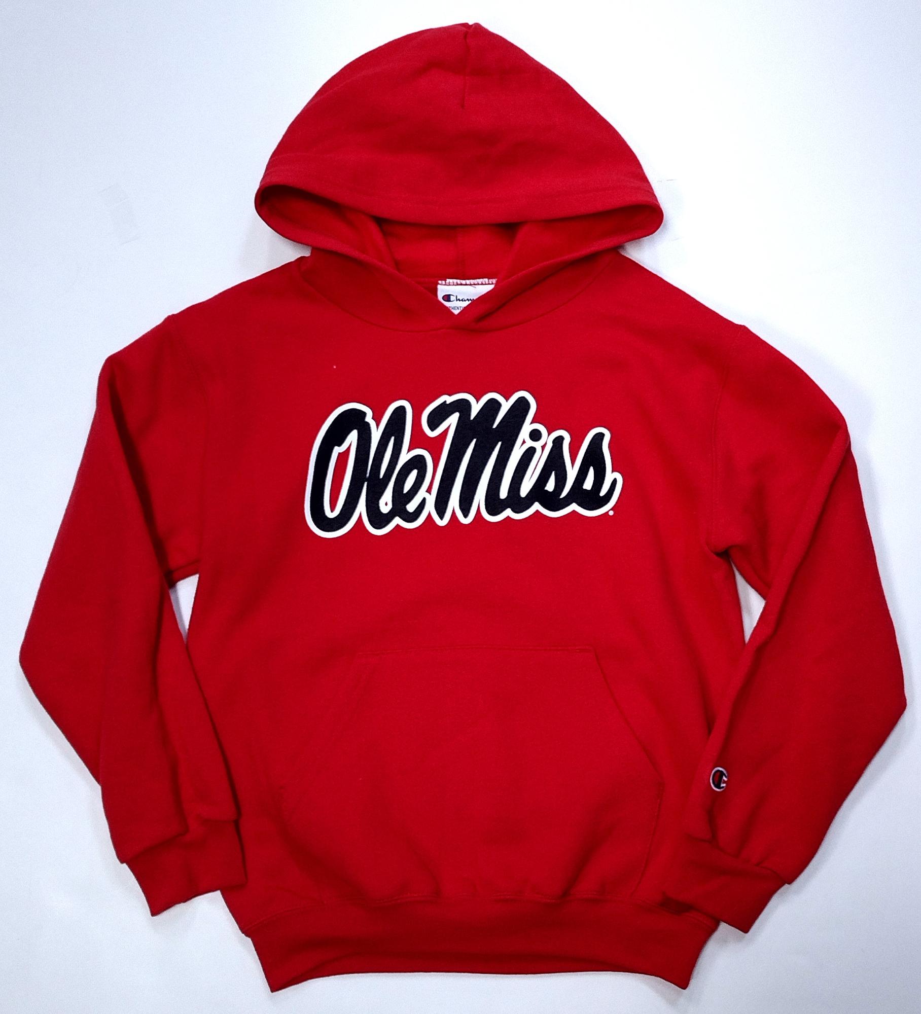 Unisex sizing. 50% cotton, 50% polyester. Favorite color Ole Miss hoodie to keep young Rebels fans warm.